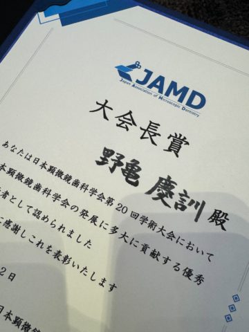 のかめニュース副院長の小屋副院長 野亀慶訓は5月31日、日本顕微鏡歯科学会の認定指導医試験を受験、指導医の先生方の前でマイクロスコープを使用した症例プレゼンテーションを披露し、書類審査の末これに合格、先日ようやく認定証を受領...